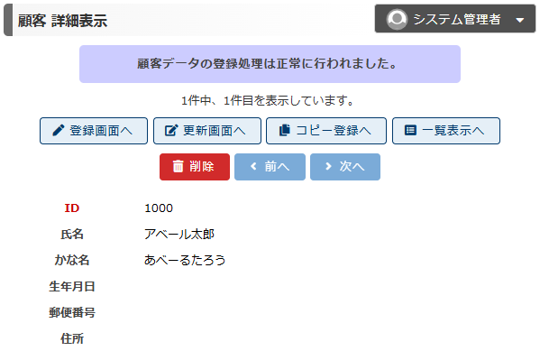 一覧には先ほどの4項目を、検索には2項目を設定します。「ID」「住所」は検索にも一覧にも表示しないままです