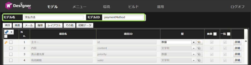 今回は、「支払方法」を選択肢モデルとして作成する方法を記載します